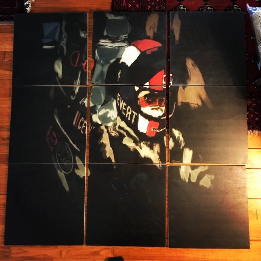 Big (4×4 feet) wood block of my Francois Cevert came today and I am pleased! Now to hang it…