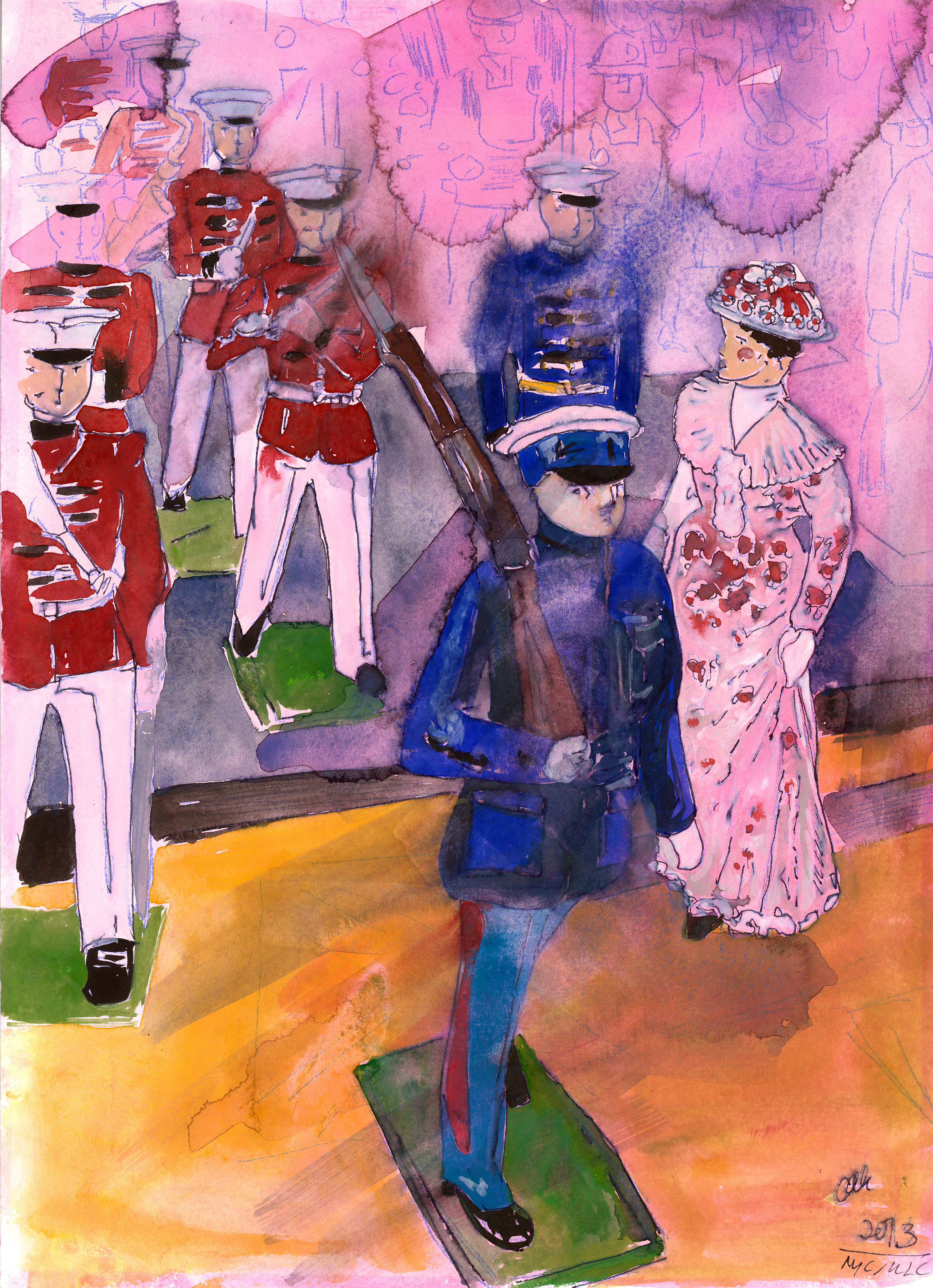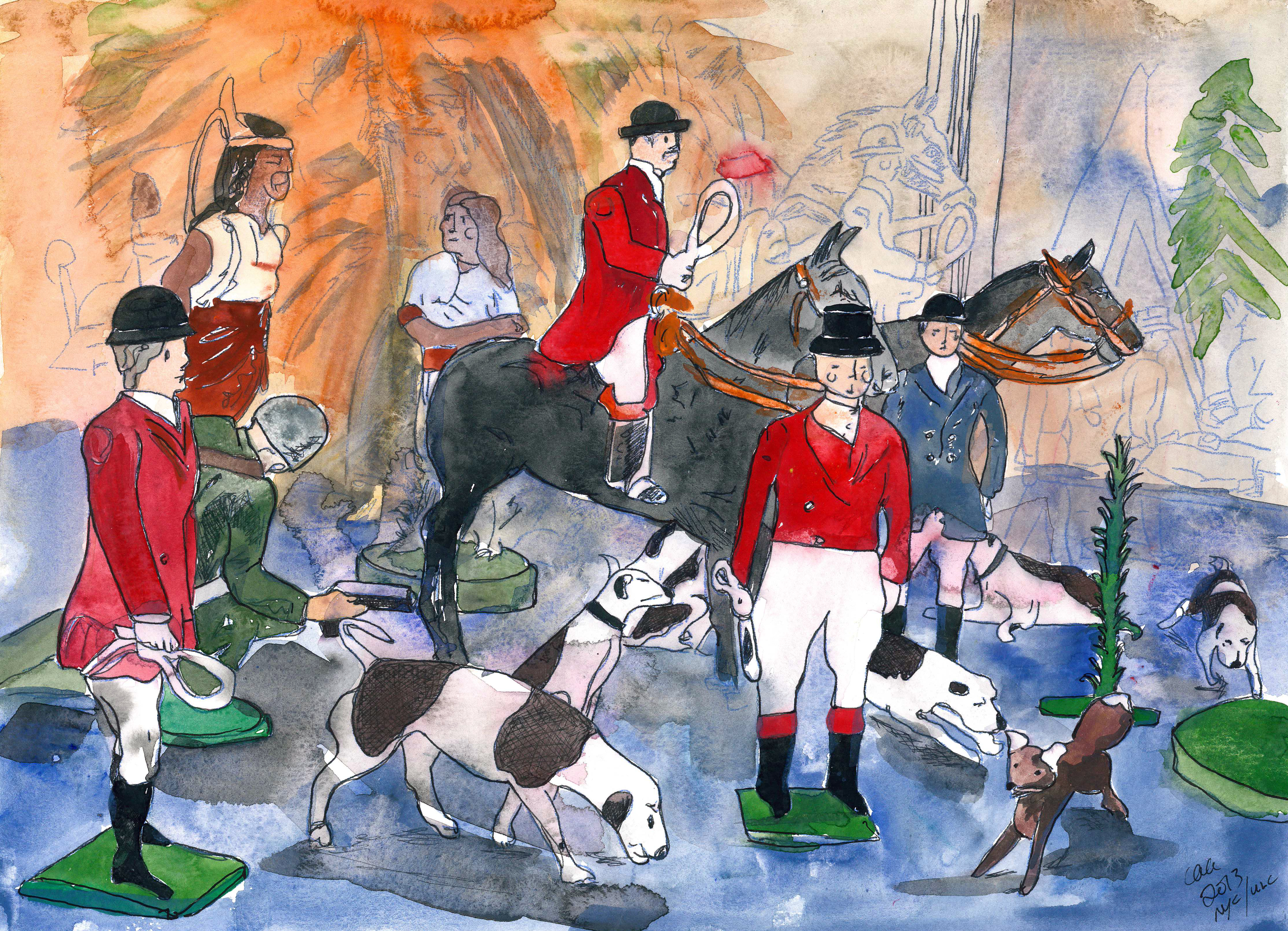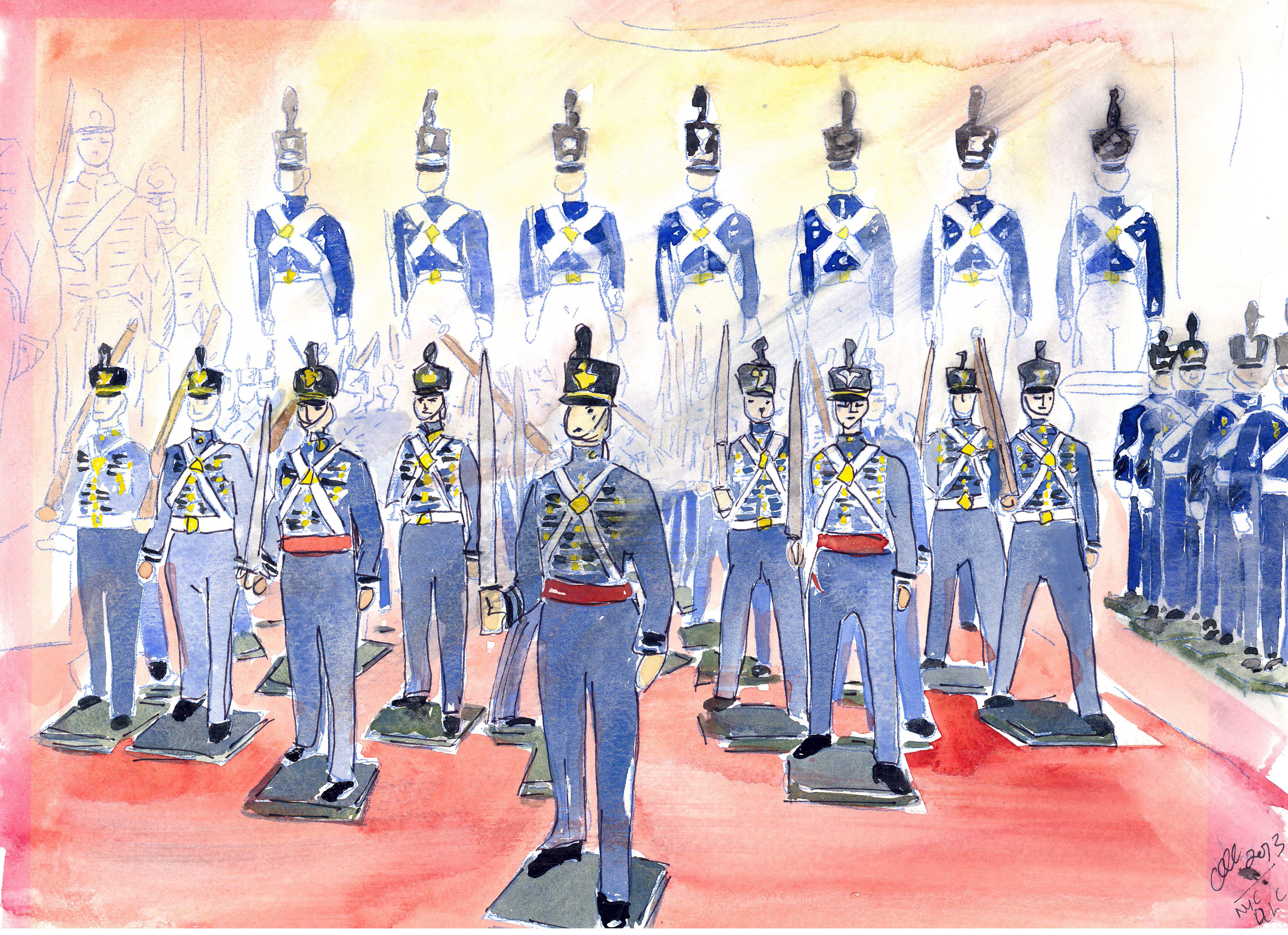 These watercolors are based on Peter Werner’s beautiful collection of vintage toy soldiers. I was lucky enough to study them and have a show at their home in The Union League Club of New York City. Sadly and stupidly (in my opinion) after many years they have removed the collection. If you were lucky enough to see it, I’m sure it gave you the sense of wonder, the spike in imagination and the Tartis ride through history – for thats what it did for me. You don’t need to be into toy soldiers to admire the artistry, and to imagine a child or adult painting them.